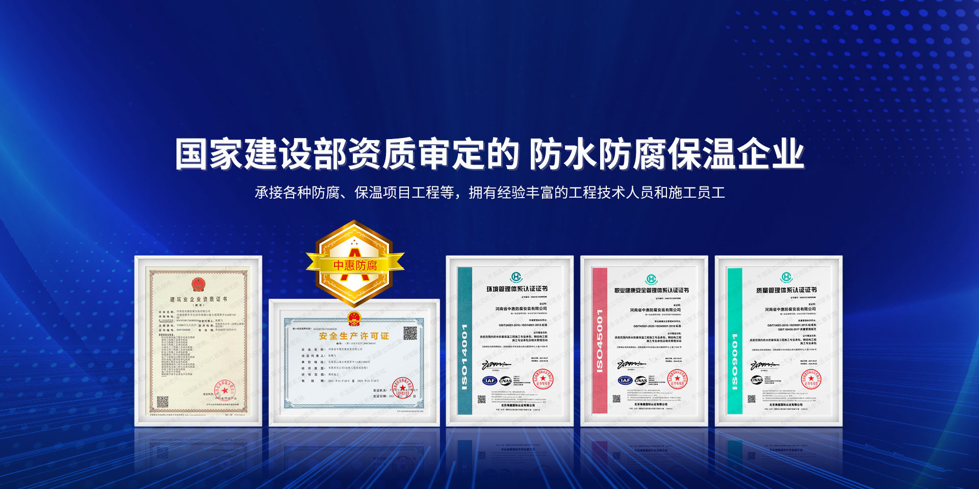 公司經營范圍:防水防腐保溫工程;消防設施工程;建筑裝修裝飾工程;建筑機電安裝工程;電力工程;建筑工程;石油化工工程;工業清洗工程;油罐清洗工程;鋼結構工程;環保工程;模板腳手架工程;電纜防火封堵、防污閃噴涂、外墻外保溫工程;各類施工勞務作業;設備維修、船舶鉚焊、涂裝;電力工程材料、建材、防水材料、防火材料、防腐保溫材料銷售,并相繼通過了GB/T19001-2008idtISO9001:2008GB/T50430-2007質量管理體系認證證書。GB/T24001-2004idtISO14001:2004環境管理體系認證證書。GB/T28001-2011idtOHSAS18001:2007職業健康安全管理體系認證證書。公司是中國防腐蝕于防護協會、中國施工企業管理協會、電力協會和中國鋼結構防水協會會員單位。 公司的經營業務涵蓋了石油、化工、電力、冶金、煤炭、船舶、國防、燃氣、水利、環保、交通運輸、航空及國防軍工和輕紡市政等行業的防腐保溫絕熱設備。鋼結構安裝、防火、防水、金屬噴鍍、聚脲噴繪、陰極保護、防滲透堵漏、玻璃鋼及各種磚版材料襯里、橡膠襯里、煙氣硫和耐酸溶劑腐蝕等工程施工。公司連續十年榮獲“省市先進施工企業”“安全生產先進單位”“重合同,守信用企業”和“AA***資質企業”的稱號。2000年被命名為市級文明單位,2002年被國家工商行政管理局命名為“重合同,守信用的企業”、被中國工業防腐蝕技術協會命名為“防腐蝕企業,能源節約及環境保護領域有豐富的經驗和***的業績。工程一次交驗合格率100%。其中攀枝花鋼鐵公司煉鐵廠四號高爐及熱風爐防腐工程、上海寶鋼公司煤氣柜防腐工程、撫順石油一廠裝置防腐項目、齊魯石化公司稀烴廠高塔防腐工程、吉林化學工業公司煉油廠油罐防腐工程、天津石化熱電廠六號爐頂棚聯絡管保溫工程、大慶油田(太倉)力神泵業工程、中國化學工程第十一建設工程、中原油田勘探局工程、中國石化銷售有限公司華北分部、魯皖輸油管道工程、貴州開磷息烽合成氨工程、陜西黃陵煤化工程、中國石油天然氣西部管道塔里木輸油工程、邯鋼集團邯寶鋼鐵公司煉鐵工程、德州供電工程、吉寶(南通)船廠工程,偃師華潤熱力工程、鄭州熱力總公司。 河南省中惠防腐安裝有限公司愿以豐富的施工經驗,***的技術,***的設備,***的管理,***的服務,竭誠為國內外廣大的用戶提供***滿意、******的工程作品。 我公司愿與國內外同仁一道,團結協作,共同推進防腐蝕行業發展! 公司地址:河南省長垣縣建設路北段360號 固定電話:0373-8866488 郵編:453400 網址:http://www_zhff_com_cn.scwbsj.com